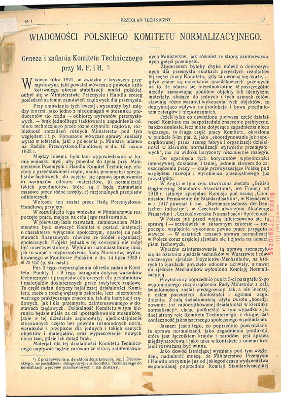 opublikowany w 1925 r. jako wkładka do „Przeglądu Technicznego"