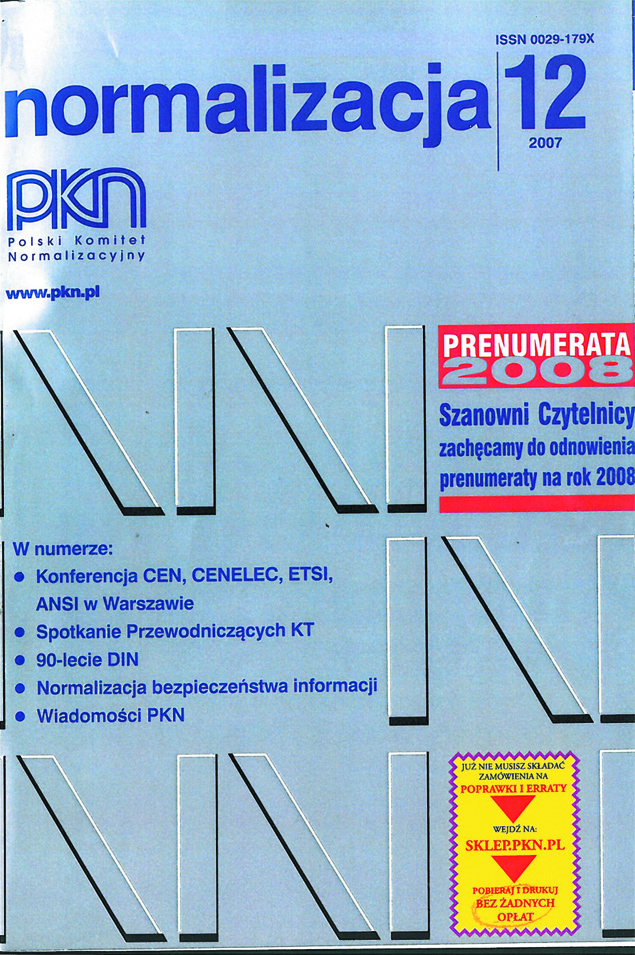 Pierwszy numer czasopisma, które w 2008 roku przyjęło nazwę „WIADOMOŚCI PKN. Normalizacja”